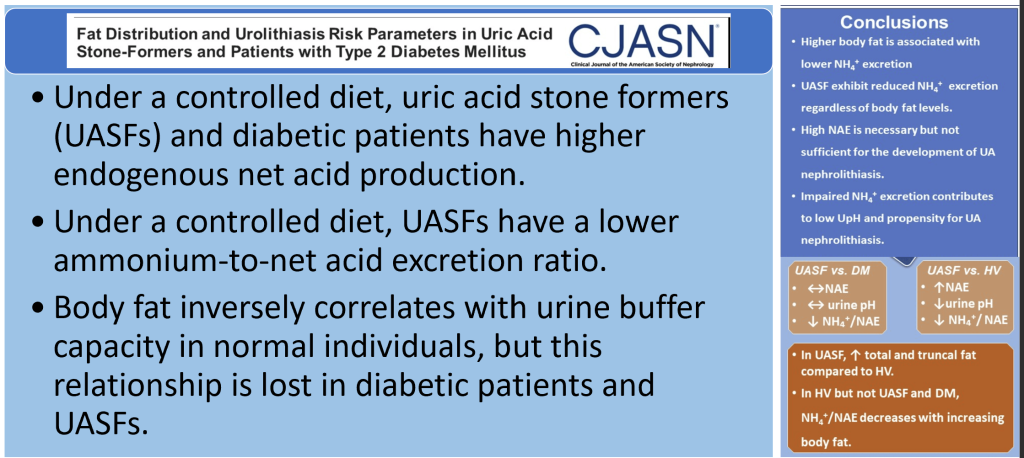 - Differentiating the contributions of intrinsic (e.g., body adiposity) versus external (e.g., dietary) factors to UA stone propensity is challenging due to uncontrolled diets in previous outpatient studies.